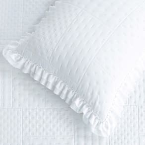 Acompanha porta travesseiros coordenadas com o mesmo acabamento e babados, garantindo uma composição harmoniosa.