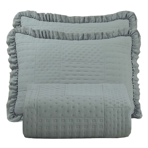 Colcha Casal Percal 300 Fios Babado Malvinni 3 Peças - Cinza