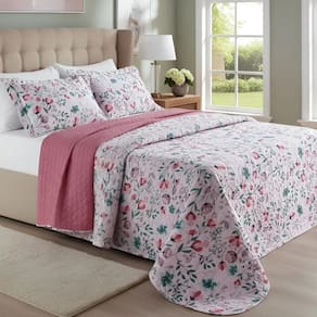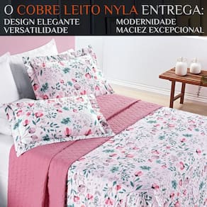Colcha Casal Super King Cama Box Nyla Kit Cobre Leito 200Fio - Pink