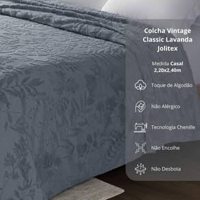 Descubra o prazer de vestir sua cama com a elegância e qualidade da coleção Vintage Classic da Jolitex. Com a tecnologia Chenille e uma paleta de cores sofisticada em bege, branco, cinza, marrom, verde e azul, cada peça traz um toque refinado para a sua decoração. Desenvolvida para ser prática e duradoura, não amassa, não encolhe e mantém sua beleza impecável, mesmo após muitas lavagens.