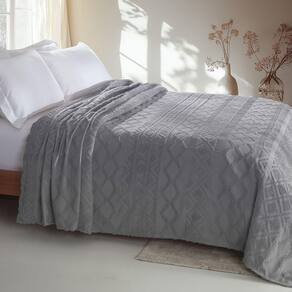 Colcha Chenille Jolitex Casal Memories Toque Algodão Cinza