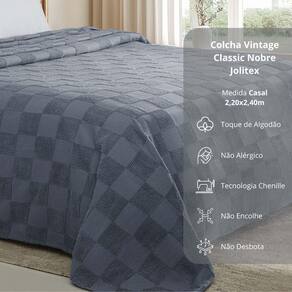 Descubra o prazer de vestir sua cama com a elegância e qualidade da coleção Vintage Classic da Jolitex. Com a tecnologia Chenille e uma paleta de cores sofisticada em bege, branco, cinza, marrom, verde e azul, cada peça traz um toque refinado para a sua decoração. Desenvolvida para ser prática e duradoura, não amassa, não encolhe e mantém sua beleza impecável, mesmo após muitas lavagens.