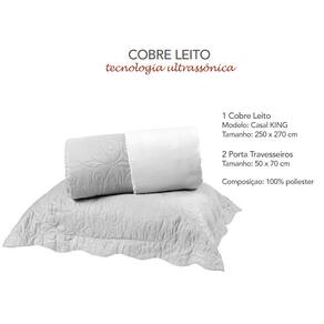 Colcha Cobre Leito Ultra Lisse. O kit colcha foi desenvolvido com tecnologia ultrassonica, onde o matelasse é feito atraves do calor e sem costura. Assim o trabalhado não descostura oferecendo maior durabilidade a peça.