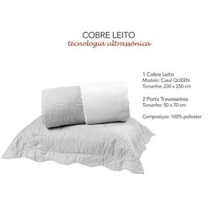 Colcha Cobre Leito Ultra Lisse. O kit colcha foi desenvolvido com tecnologia ultrassonica, onde o matelasse é feito atraves do calor e sem costura. Assim o trabalhado não descostura oferecendo maior durabilidade a peça.
