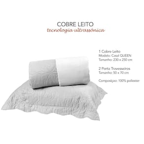 Contem: 1 Cobre Leito Modelo: Casal QUEEN Tamanho: 230 x 250 cm 2 Porta Travesseiros Tamanho: 50 x 70 cm Composiçao: 100% poliester / 60g/m² Enchimento 100g/m²