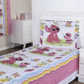 Colcha Cobre Leito Infantil Solteiro Menino Menina Personagens + Capa de Almofada Cor: Stitch rosa O quarto dos seus filhos vai ficar mais lindo e divertido com as colchas dos personagens do seu desenho animado favorito. Contém na embalagem: 1 cobre leito 2,20m x 1,45m 1 porta travesseiro 75cm x 60cm 1 capa de almofada 40cm x 40cm Tecido e composição: Cobre leito: oxford 100% poliéster Capa de almofada: malha gel 100% poliéster - O cobre leito e o porta travesseiro não são matelados - Foto ilustrativa, a tonalidade da cor pode variar um pouco no produto real Produtos fabricados em Ibitinga-SP, a Capital Nacional do Bordado e do Enxoval. Marca: Não Informado Ean: 7793725986584