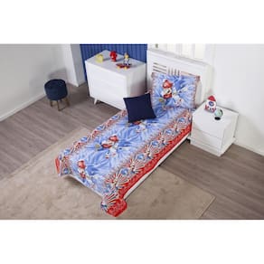 Colcha Cobre Leito Infantil Solteiro Menino Personagens + Capa de Almofada Cor: Game O quarto dos seus filhos vai ficar mais lindo e divertido com as colchas dos personagens do seu desenho animado favorito. Contém na embalagem: 1 cobre leito 2,20m x 1,45m 1 porta travesseiro 75cm x 60cm 1 capa de almofada 40cm x 40cm Tecido e composição: Cobre leito: oxford 100% poliéster Capa de almofada: malha gel 100% poliéster - O cobre leito e o porta travesseiro não são matelados - Foto ilustrativa, a tonalidade da cor pode variar um pouco no produto real Produtos fabricados em Ibitinga-SP, a Capital Nacional do Bordado e do Enxoval.