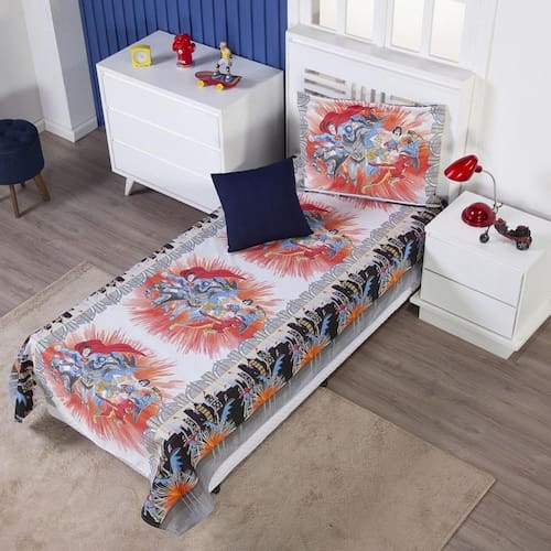 Colcha Cobre Leito Infantil Solteiro Menino Personagens + Capa de Almofada Cor: Liga dos heróis O quarto dos seus filhos vai ficar mais lindo e divertido com as colchas dos personagens do seu desenho animado favorito. Contém na embalagem: 1 cobre leito 2,20m x 1,45m 1 porta travesseiro 75cm x 60cm 1 capa de almofada 40cm x 40cm Tecido e composição: Cobre leito: oxford 100% poliéster Capa de almofada: malha gel 100% poliéster - O cobre leito e o porta travesseiro não são matelados - Foto ilustrativa, a tonalidade da cor pode variar um pouco no produto real Produtos fabricados em Ibitinga-SP, a Capital Nacional do Bordado e do Enxoval.