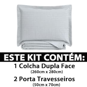 Características: - Tamanho: King - Contém: 1 Colcha King 260cm X 280cm - 2 Porta Travesseiros 50cm x 70cm - Marca: Camesa - Modelo: Loft - Composição: Microfibra 100% Poliéster - Tecido Matelassê Ultrassônico - Toque ultra macio e resistente - Tecido: Microfibra pré-lavado - Dupla face