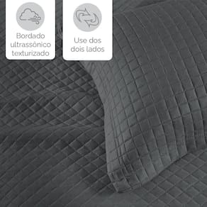 Características: - Tamanho: Queen - Contém: 1 Colcha Queen 240cm X 260cm - 2 Porta Travesseiros 50cm x 70cm - Marca: Camesa - Modelo: Loft - Composição: Microfibra 100% Poliéster - Tecido Matelassê Ultrassônico - Toque ultra macio e resistente - Tecido: Microfibra pré-lavado - Dupla face