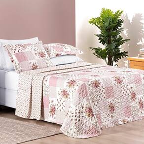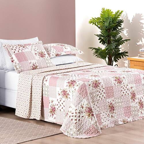 Colcha Estampada Dupla Face Bouti King 03 Peças - Rosa Matura