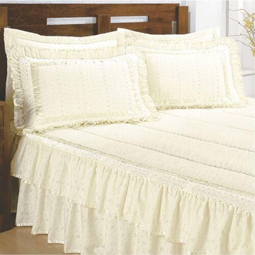 Produto 100% fabricado no brasil - valorize nossa industria Colcha nupcias lese casal king babado duplo 07 peças Utilizamos matérias-prima de excelente qualidade que resistem à processo de lavagem, mantendo a beleza e durabilidade do produto. Contém na embalagem: 01 colcha casal king 2,60m comprimento x 3,10m largura 04 porta travesseiros: 70cm comprimento x 50cm largura 02 refis 60cm comprimento x 45cm largura Composição colcha: Tecido superior lese: 67% poliéster - 33% algodão Enchimento: 100% poliéster Tecido inferior: 100% poliéster Composição refis: Tecido: 100% polipropileno Enchimento: 100% poliéster atenção: a foto apresentada no anuncio pertence ao nosso atelier, é a foto do produto cuidado com as falsificações As cores podem mudar de acordo com o monitor. fique atento à descrição do produto. Marca: Não Informado