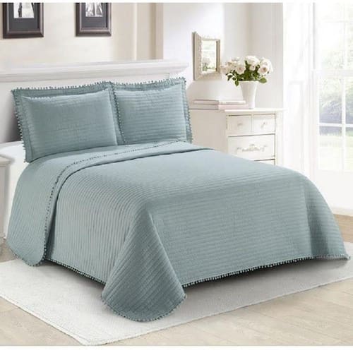 Colcha Pompom Solteiro 160X230 - Azul - Única