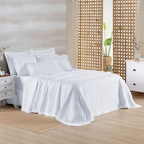 Inclui capas de travesseiro que combinam com a colcha, proporcionando uma aparência harmoniosa e completa ao seu espaço. Compatível com máquina de lavar, facilita a rotina de cuidados, mantendo a beleza e a qualidade do produto sempre intactas. Contém: 01 Cobre leito 2.60m x 2.40m 02 Porta Travesseiros 80cm x 55cm medida util 70cm x 50cm Composição Superior e Inferior Micropercal 200 fios 100% Poliéster Enchimento 100% Poliéster