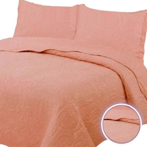 Colcha Queen Bouti Dupla Face 03 Peças - Salmão Kit Cobre Leito Colcha Bouti Matelada Estampa Vibrante, Renove o visual do seu quarto com elegância e charme.