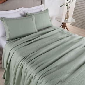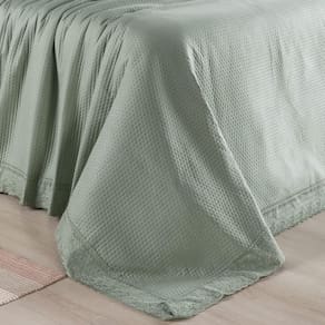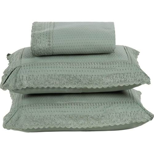 Colcha Queen Home Paris Com Bordado Inglês Micropercal 300 Fios Toque De Algodão 3 Peças - Verde