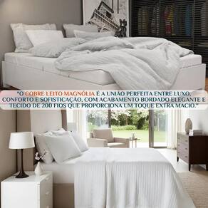 Colcha Queen Magnólia 200Fio Bordada Luxo Conforto Qualidade