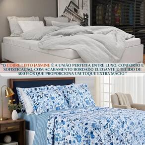 Colcha Queen Size Jasmine Luxo Bordado Elegante E Confortável Cor: AZUL Sua cama merece vestir-se de luxo, e você merece noites de puro aconchego. A Colcha Queen Size Jasmine é confeccionada com tecido de alta qualidade e bordado sofisticado, garantindo não só elegância, mas também resistência e praticidade no dia a dia. Com caimento perfeito, ela valoriza a decoração do quarto e proporciona acabamento digno de um ambiente luxuoso. Imagine deitar-se em uma cama que parece ter saído de uma revista de decoração. O bordado delicado traz um charme único, enquanto o toque confortável envolve seu corpo como um abraço macio. Essa colcha não é apenas um item de cama, mas uma experiência de bem-estar e beleza. Fácil de manter e resistente a lavagens, a Colcha Jasmine é prática para o uso diário, sem perder o brilho e a elegância. Ideal para quem busca unir luxo, conforto e praticidade em um único produto. Contém: 1 Colcha - 2,60m x 2,40m 2 Porta travesseiros - 70cm x 50cm Composição: Tecido:400 Fios 1. A colcha acompanha porta-travesseiros Sim, o conjunto inclui porta-travesseiros coordenados com o mesmo bordado elegante. 2. Posso usar a colcha em todas as estações Sim, ela é leve para o verão e pode ser Utilizado em conjunto com mantas no inverno. 3. O tecido desbota após lavagens Não, é produzido com tecnologia que mantém as cores vivas e o brilho do bordado. 4. Qual é o diferencial desta colcha O bordado refinado e o acabamento luxuoso que transformam a cama em destaque na decoração. 5. É fácil de cuidar no dia a dia Sim, a colcha é resistente e pode ser lavada em máquina, mantendo sua qualidade. Transforme sua cama em um verdadeiro cenário de elegância e aconchego. Garanta já a Colcha Jasmine e viva o luxo no seu dia a dia Marca: Não Informado