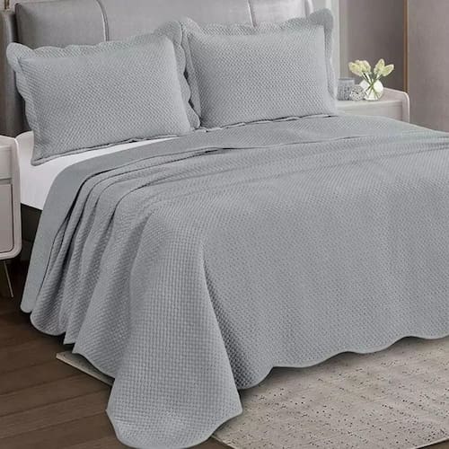 Com dimensões de 2,40m x 2,60m, essa colcha queen vem acompanhada de dois porta travesseiros de 50cm x 70cm, completando o conjunto de 3 peças. A cor cinza claro traz elegância e versatilidade, combinando perfeitamente com qualquer estilo de decoração.