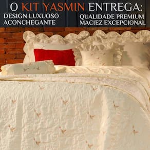 Imagine chegar em casa depois de um dia longo e se envolver em uma colcha que abraça você com suavidade e elegância. A Yasmin não é só uma colcha, é o aconchego que seu quarto merece, a sensação de relaxamento e bem-estar que transforma o sono e o descanso em momentos inesquecíveis. Além disso, o tecido 100% algodão egípcio é natural, respirável e perfeito para quem tem pele sensível.