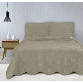 Colcha Velvet Veludo Queen Size Porta Travesseiros Bege 3 Peças