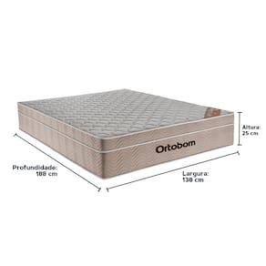 Modelo: Airtech Marca: Ortobom Tamanho: Casal Dimensões: 138x188X25 (Largura x Comprimento x Altura) Conforto: Macio Sistema: Molas Ensacadas Pillow: Euro Pillow Peso Máximo recomendado: 120 kg (Por pessoa) Proteções: Antiácaro, antialérgico, antifungo, antimofo Garantia: 1 ano pelo fabricante