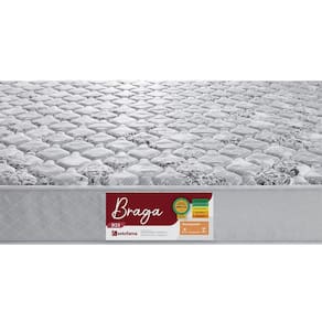 O Colchão Braga é composto por Espuma Flexível 100% Poliuretano Densidade 33kg/m, contendo no lado superior e inferior tecido 100% Poliéster - Gramatura 72g/m e Revestimento Lateral 54,39% Poliéster e 45,61% Polipropileno com gramatura de 151,54g/m.