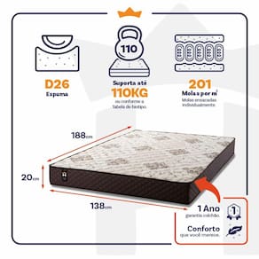 Medidas do Colchão: 88x188x28 cm, 96X203x28 cm,138x188x28 cm, 158x198x28 cm, 193x203x28 cm.