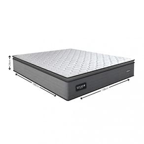 Características: Estrutura em matelassê malha, fibra siliconada, manta D28 e matelassê tecido plano Molas ensacadas soft pillow Revestimento Superior em malha Revestimento Lateral tecido suede linho Revestimento Inferior em malha EPS Suporta peso até 120kg