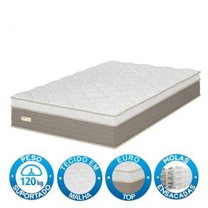 Características: Peso suportado 120kg Molas ensacadas Densidade D-26 Revestimento tampo malhas Revestimento lateral poliéster Possui EPS One face -não permite virar o colchão- Possui pilow: Euro top Selo inmetro: 007069/2024 OCP: 0166