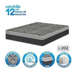 Características: Peso suportado 120kg Molas ensacadas Densidade D-26 Revestimento tampo malhas Revestimento lateral poliéster Possui EPS One face -não permite virar o colchão- Possui pilow: Euro top Selo inmetro: 007069/2024 OCP: 0166