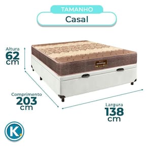 Suporta até 120kg, ideal para uso frequente com firmeza equilibrada Base baú Casal com 37cm de altura e amplo espaço interno para organização