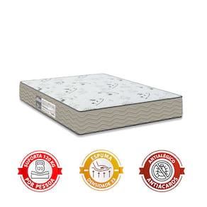 INFORMAÇÕES COLCHÃO: - Tecido de revestimento: Poliéster Bordado - Cor: Branco c/ Lateral em Suede Bege - Modelo: Casal One Face (uma face) - Dimensão: 0,17x1,38x1,88 - Peso limite: 120 kg por pessoa - Peso do produto: 7 kg - Material de estrutura: Espuma D33/EPS - Tipo de conforto: Intermediário