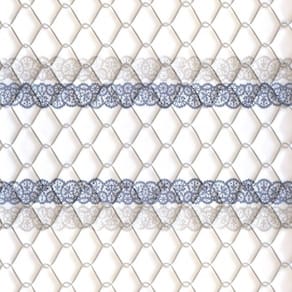 Tecido em Poliéster: O tampo em poliéster branco com detalhes em azul e cinza oferece um visual moderno e elegante, além de ser resistente e fácil de manter, com gramatura de 120 g/m.