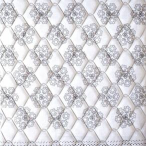 Tecido em Poliéster: O tampo em poliéster branco com detalhes em preto oferece um visual moderno e elegante, além de ser resistente e fácil de manter, com gramatura de 120 g/m.