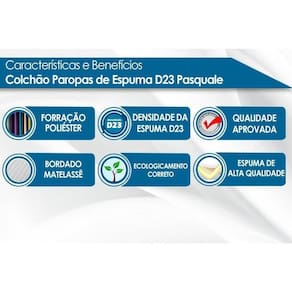 Imagens Meramente Ilustrativas. Não nos responsabilizamos pela montagem/instalação dos produtos. Todas as informações divulgadas são de responsabilidade exclusiva do fabricante/fornecedor. Tipo Tecido de Forração Revestimento: Poliéster | Tipo de Estrutura do Bloco de Espuma: D23 | Tipo de Conforto: Extra Macio | Nossa Avaliação: Qualidade Boa | Peso Máximo Suportado: 60 kg | Tempo de Garantia: 3 meses | Vantagens Extras do colchão D23: Ecologicamente Correto | Certificados de Qualidade: Qualidade Aprovada | Tipo de Bordado do Tecido de Revestimento: Matelassê | Tecido com Tratamento: AntiÁcaro e AntiFungo | Modo de Utilização: Double Side | Camadas Interna do Estofamento de Espuma: Alta Qualidade | É infantil: Não | É eco-friendly: Sim | É antiácaros: Sim | É ortopédico: Sim | É kit: Não | Material: Tecido | Fonte do produto: N/A | Com moldura perimetral: Não | Com pegas laterais: Não | Número de registro/certificação INMETRO: N/A | Condição do item: Novo | Classificação da Cama: Casal | Produto: N/A | Cômodo Indicado: Multiuso | Código universal de produto (GTIN): 7890372903046 | Condição do Item: Novo | Link Site: https://www.costaricacolchoes.com.br/produtos.asp?produto=17847 | Numeral: 0 | Não se Aplica: N/A | Não Possui: Não | Linha/Modelo: Colchões de Espuma Paropas | Cor Cnova: Blush | Cor Meli: Ciano | Contatos Sac Fábrica: sac@paropas.com.br | Categoria Trilha: Colchão> Colchão de Espuma D23 | Categoria - Sub: Colchão de Espuma D23 | Categoria - Pai: Colchão | Comprimento Embalagem: 188.00 | Largura Embalagem: 138.00 | Altura Embalagem: 20.00 | Kit: 0 | Peso: 32.43 Kg | Peso Real Kg: 32.43 | Peso Cubado: 130.00 | Volumes: 1 | M3: 0.52 | Comprimento/Profundidade: 188 cm | Largura: 138 cm | Altura: 20 cm | Tamanho Montado: Larg:138.00 x Comp/Prof:188.00 x Alt: 20.00 | Comprimento/Profundidade Montado: 188.00 | Largura Montado: 138.00 | Altura Montado: 20.00 | Tamanho Cama Colchão: Casal | Data Cadastro: 2023-9-9 14:55:52 | Sigla Estoque: 2 | Marca: Paropas Marca: COLCHÃO PAROPAS Ean: 7890372903046