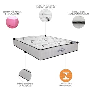 Material da Estrutura: Espuma Pró Aditivada e espuma HR 45 (High Resilience) de alta performance.