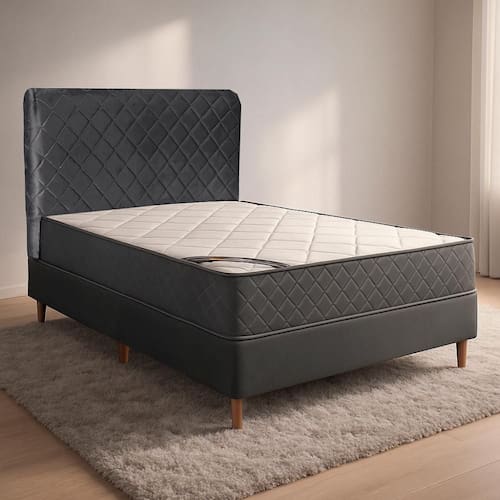 Estrutura em molas ensacadas individualmente e borda lateral em espuma de alto resiliência.