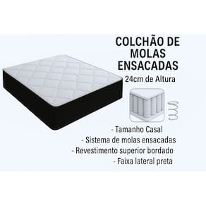 O Colchão tem sua estrutura composta por molas ensacadas individualmente, proporcionando conforto e suporte necessário para a parte lombar da coluna e é altamente resistente e confortável, proporcionando melhor sustentação e durabilidade ao produto, o tampo é bordado, que entrega uma camada extra de conforto. Seu revestimento é com tratamento antialérgico e antiácaro. Esse é o colchão ideal para toda a família.