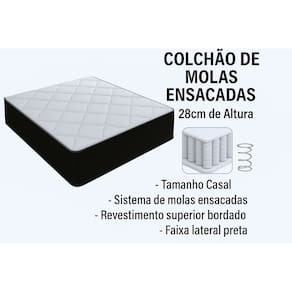 O Colchão tem sua estrutura composta por molas ensacadas individualmente, proporcionando conforto e suporte necessário para a parte lombar da coluna e é altamente resistente e confortável, proporcionando melhor sustentação e durabilidade ao produto, o tampo é bordado, que entrega uma camada extra de conforto. Seu revestimento é com tratamento antialérgico e antiácaro. Esse é o colchão ideal para toda a família.