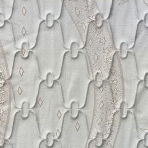Conforto por Cima e Visual Moderno: Mesmo sendo bem firme, o Super Pillow (aquela camada extra no topo) deixa o colchão com um toque macio e aconchegante. O tecido de malha branca de 280 g/m², com seus bonitos detalhes, é agradável ao toque, ajuda o colchão a "respirar" e dá um visual elegante e moderno ao seu quarto.
