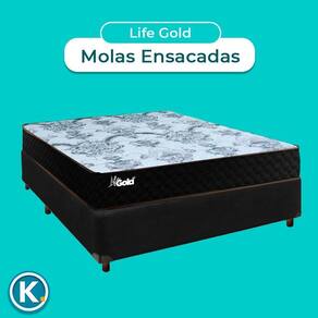 Colchão Casal Molas Ensacadas + Box Preto - Life Gold Paropas Conjunto Casal Colchão Life Gold + Cama Box Colchão Casal com 25cm de altura, ideal para conforto diário com excelente estrutura