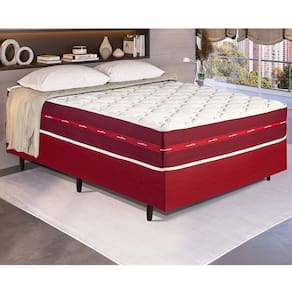 Caracteristicas: Molas ensacadas individualmente, bitola 2mm, media 190 molas/m Espuma de suporte D-33kg/m, acabamento D-20kg/m e borda perimetral D-26kg/m Tampo em malha 89 poliester, 11 viscose, bordado com espuma flexivel, TNT e fibra de poliester Tecido faixa 100 poliester e tecido inferior antiderrapante Suporta ate 120 kg Produzido conforme padroes de qualidade do INMETRO