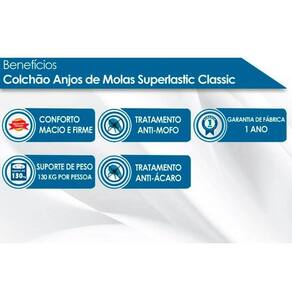 Colchão Casal Molas Superlastic Classic Euro Pillow + Base CRC Suede Black (138x188) - D Angelis Anjos Abaixo segue os produtos do KIT: Colchão Casal Molas Superlastic Classic Euro Pillow + Base CRC Suede Black (138x188) - D Angelis Anjos