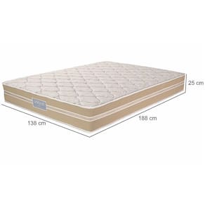 Estrutura do Colchão: Tampo bordado em malha fibra de bamboo, lâmina de suporte aglomerado de espuma D65, bordas em aglomerado de espuma D65, molejo com molas encasadas individualmente, travamento com material isolante, base de EPS para a distribuição uniforme do peso e fechamento em TNT.Tipo de Colchão: Em molas ensacadas individualmente, na quantidade 169 molas, com 15 cm de alturaResistência Espuma: AG D65 “espuma de qualidade”Revestimento Tampo: Tampo em tecido malha em fibra de bamboo que possui alto índice de absorção de umidade, fazendo que o corpo mantenha a temperatura sempre agradável, bem como características bacteriostática e biodegradável. Com toque surpreendentemente macio!Revestimento Lateral: Lateral em tecido Colchão com altura: Possui altura de 25 cm Certificado: Sim, pelo INMETRO espuma de qualidade certificado pela portaria nºPeso Suportado: Suporta o peso de até 120 Kg de cada ladoDimensões do produto
