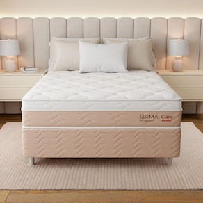 Que tal o Colchão Sigma Care?Além de ser essencial para uma boa noite de sono, o Colchão Sigma Care também é o toque que completa o visual do dormitório: o modelo combina design elegante e acabamento sofisticado com estrutura preenchida em espuma e molas ensacadas que oferecem comodidade personalizada, garantindo noites tranquilas e manhãs cheias de disposição. O revestimento é feito com tecido que recebe o tratamento antisséptico VbacBLOCK, que é antialérgico e antiácaro - pensado para inibir maus odores e facilitar a higienização, ele reduz a poeira aparente no colchão e promove um descanso livres de desconfortos respiratórios. Macio, aliado da saúde e com visual de bom gosto, ele é indispensável para quem quer relaxar sem preocupações.