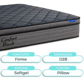 O Colchão Confort Black Ortobom une tecnologia e conforto para um sono de qualidade. Conta com pillow top em espuma D28 selada, que garante maciez, resiliência e durabilidade. Sua estrutura interna em EPS de alta resistência oferece suporte firme e estável, mantendo a ergonomia ideal. O revestimento em tecido de viscose e poliéster de alta gramatura possui tratamentos antiácaro e antifungo, além de toque macio e ótima ventilação. Com a exclusiva espuma Soft Gel, ajuda a manter a temperatura agradável, proporcionando noites mais frescas e reparadoras.Ficha Técnica Colchão:Modelo: Confort BlackMarca: OrtobomTamanho: QueenDensidade: D28Conforto: FirmeTecido: PoliésterLargura: 158cmComprimento: 198cmAltura: 30cmSuporte de Peso: 120KgGarantia: 3 MesesAtenção:Antes da compra certifique-se de que o produto passa por elevadores, portas e corredores.As transportadoras não realizam entregas por escadas ou içamentos.Caso o item não caiba no elevador, a entrega será considerada concluída no térreo do prédio.A cor e tonalidade do produto pode variar de acordo com o dispositivo que o usuário está acessando.