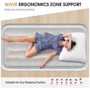Desfrute de conforto aprimorado e elegância com o Colchão de Ar DIVON Twin. Apresentando um elegante padrão ondulado e parte superior de camurça macia, este colchão inflável possui 190 cm de comprimento, 99 cm de largura e 46 cm de altura, proporcionando conforto superior com recursos à prova d'água. Com tecnologia de suporte resistente, distribui o peso de forma equilibrada, reduzindo pontos de pressão e oferecendo conforto ergonômico. Suporta até 150 kg, garantindo uma noite de sono tranquila. Feito com materiais antiderrapantes de qualidade industrial, oferece estabilidade aprimorada. Sua construção em PVC 30% mais espesso evita desinflação durante a noite, proporcionando suporte firme. Com bomba integrada de 110v, infla e desinfla em apenas 3 minutos. Versátil, é perfeito para usar em casa, receber convidados, acampar ou presentear familiares e amigos. Desfrute de uma experiência de sono excepcional com o Colchão de Ar DIVON Twin!