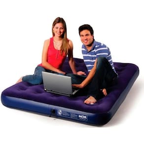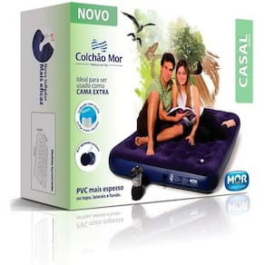 O Colchão de Ar Inflável Casal Mor é multiuso e feito com vinil resistente pré-testado, possui um revestimento aveludado e é acompanhado de um kit para reparo.
