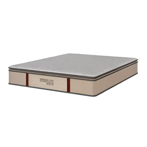 Uma combinação única de sofisticação e conforto. Seu visual foi refinado, com faixas de couro luxuosamente costuradas na frente, acrescentando elegância artesanal. O nome bordado em destaque é um símbolo de qualidade. Em tons de bege e marrom, este colchão traz serenidade e requinte, elevando qualquer quarto.